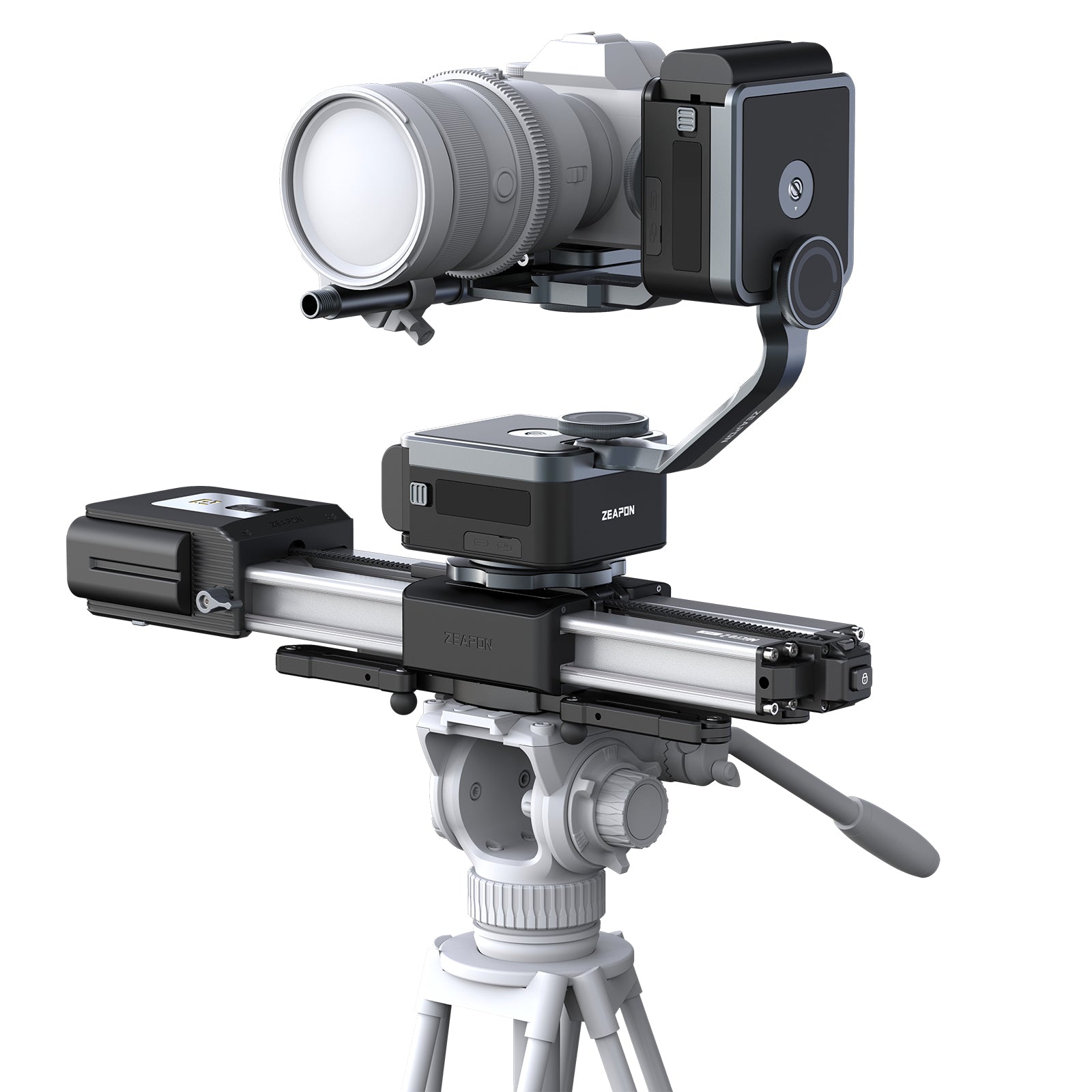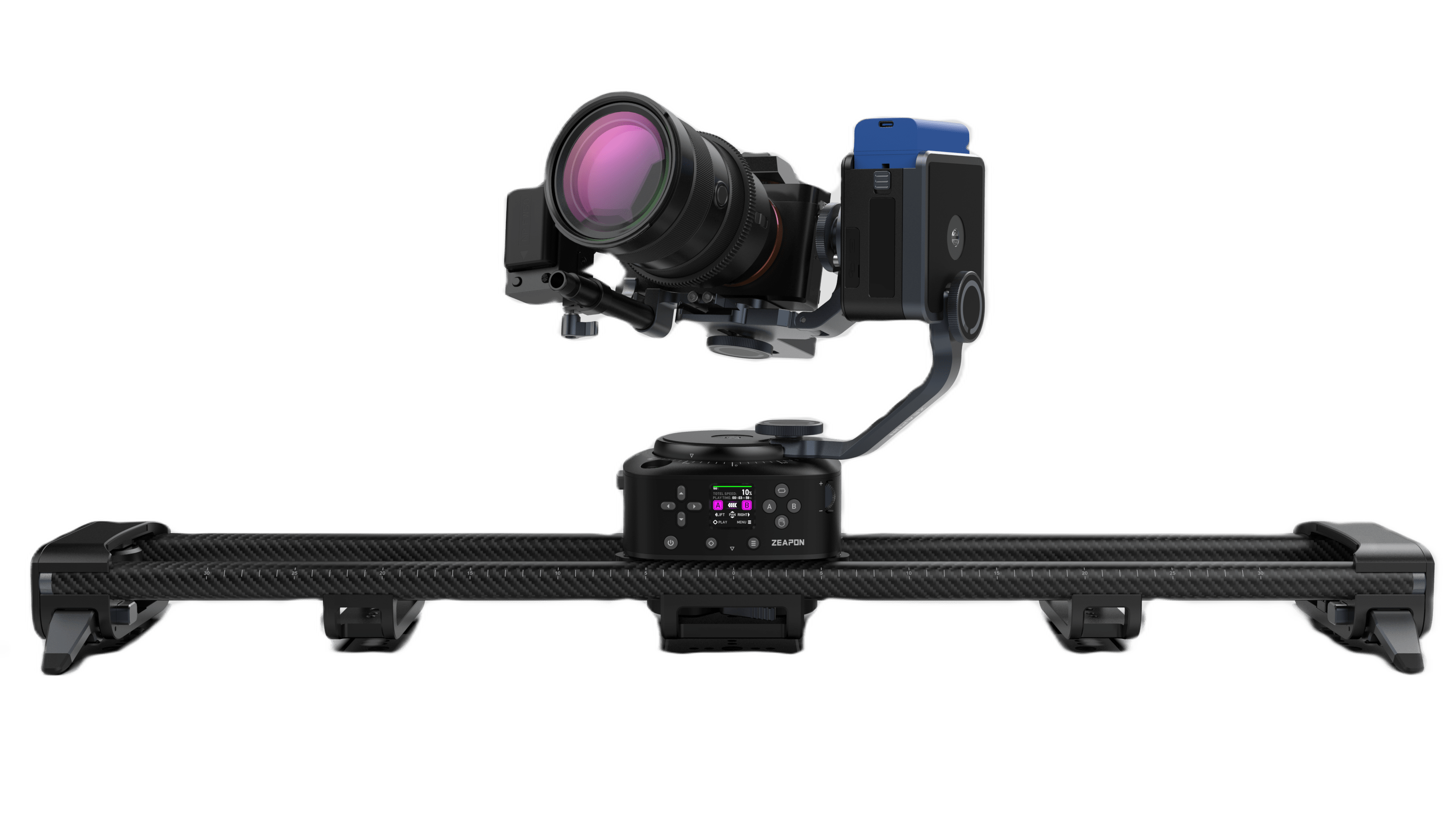 The newl AXIS multi-axis motorized slider series is made from high-quality carbon fiber. The slider integrates a motorized pan head for panning motion and can be linked with Zeapon’s proprietary PONS pan-tilt head for a multi-axis motorized slider, enabling true multi-axis operation and filming capabilities for the slider.