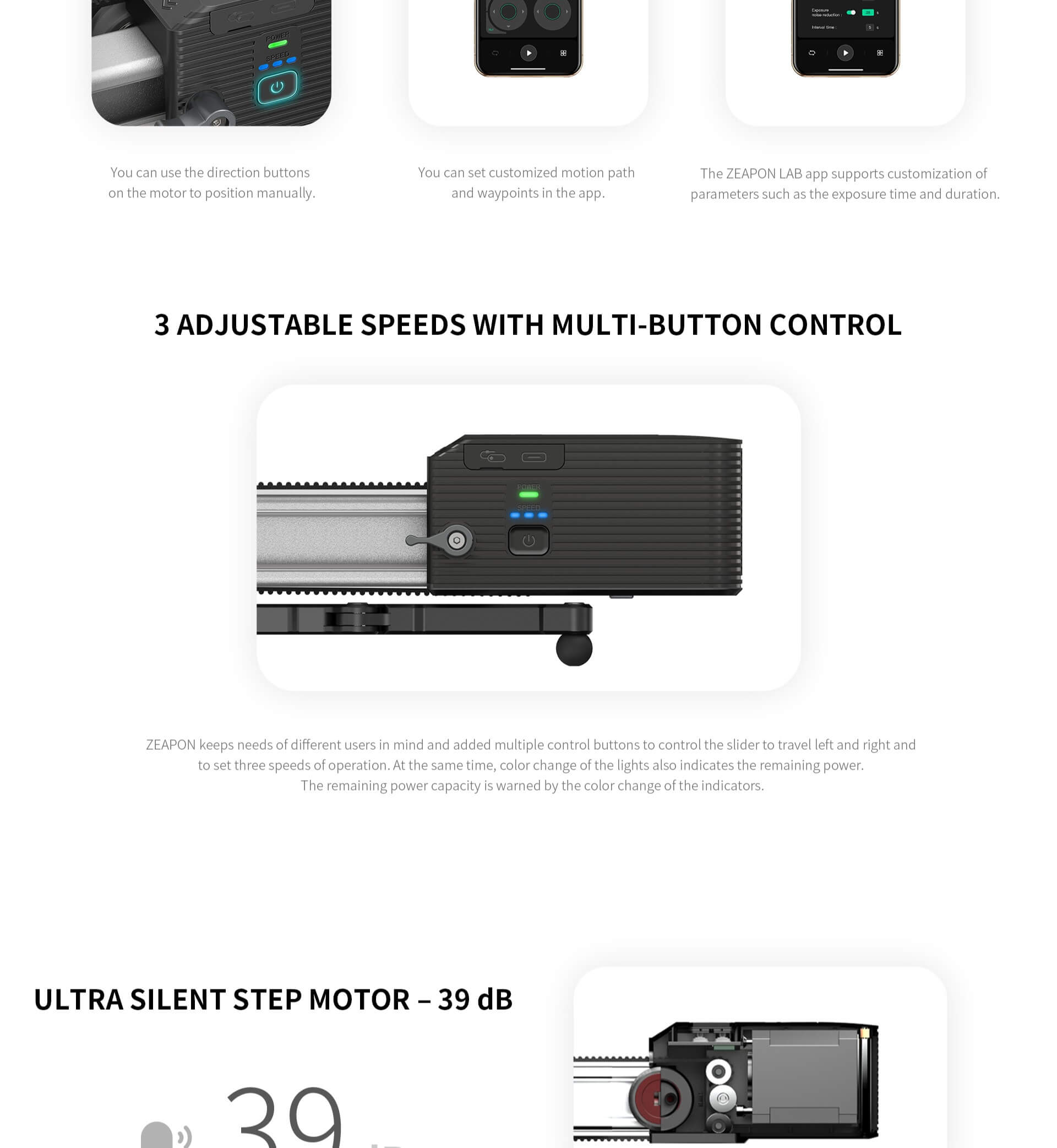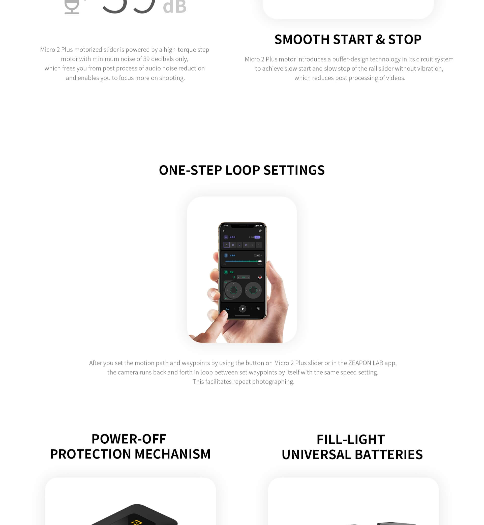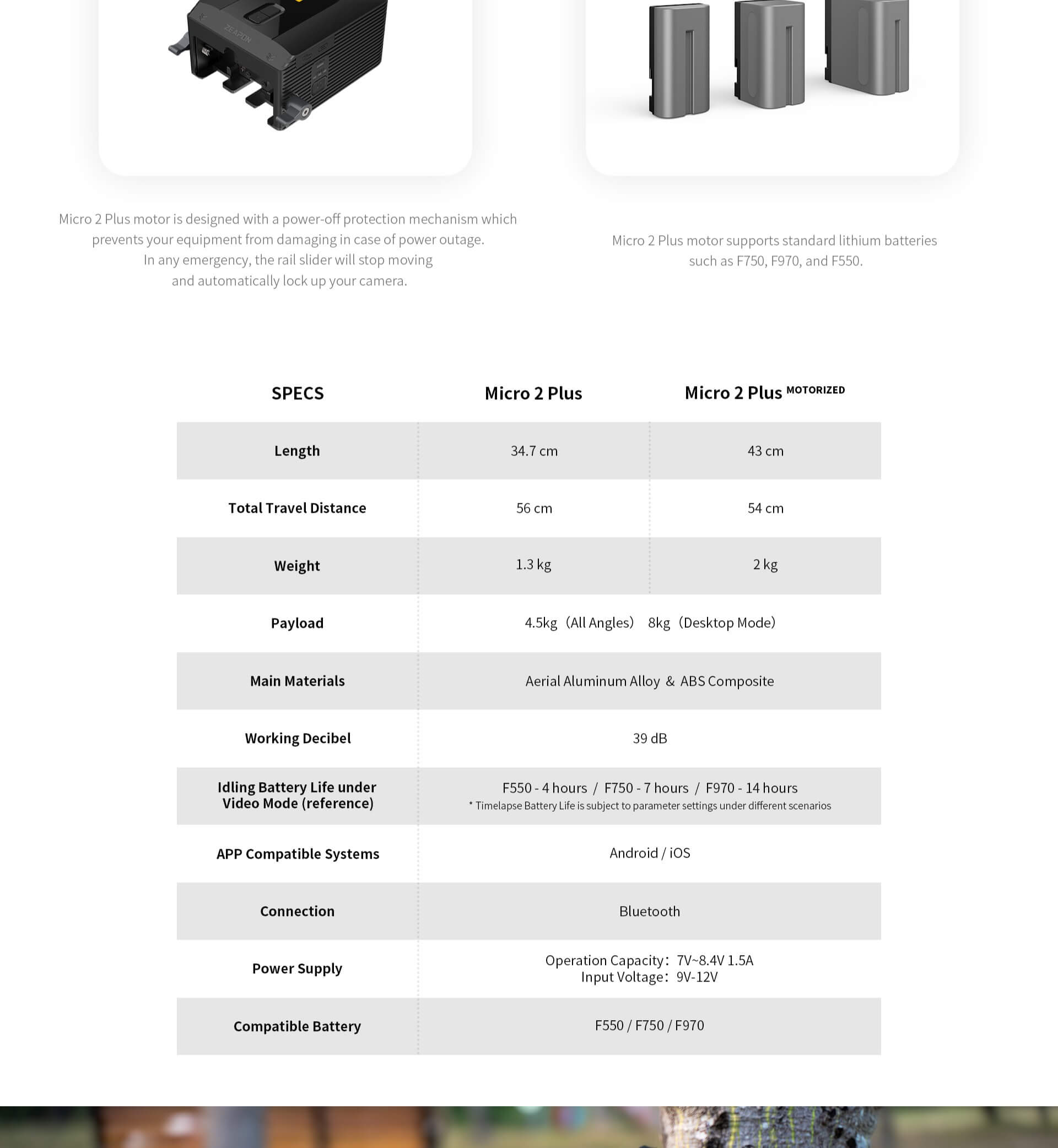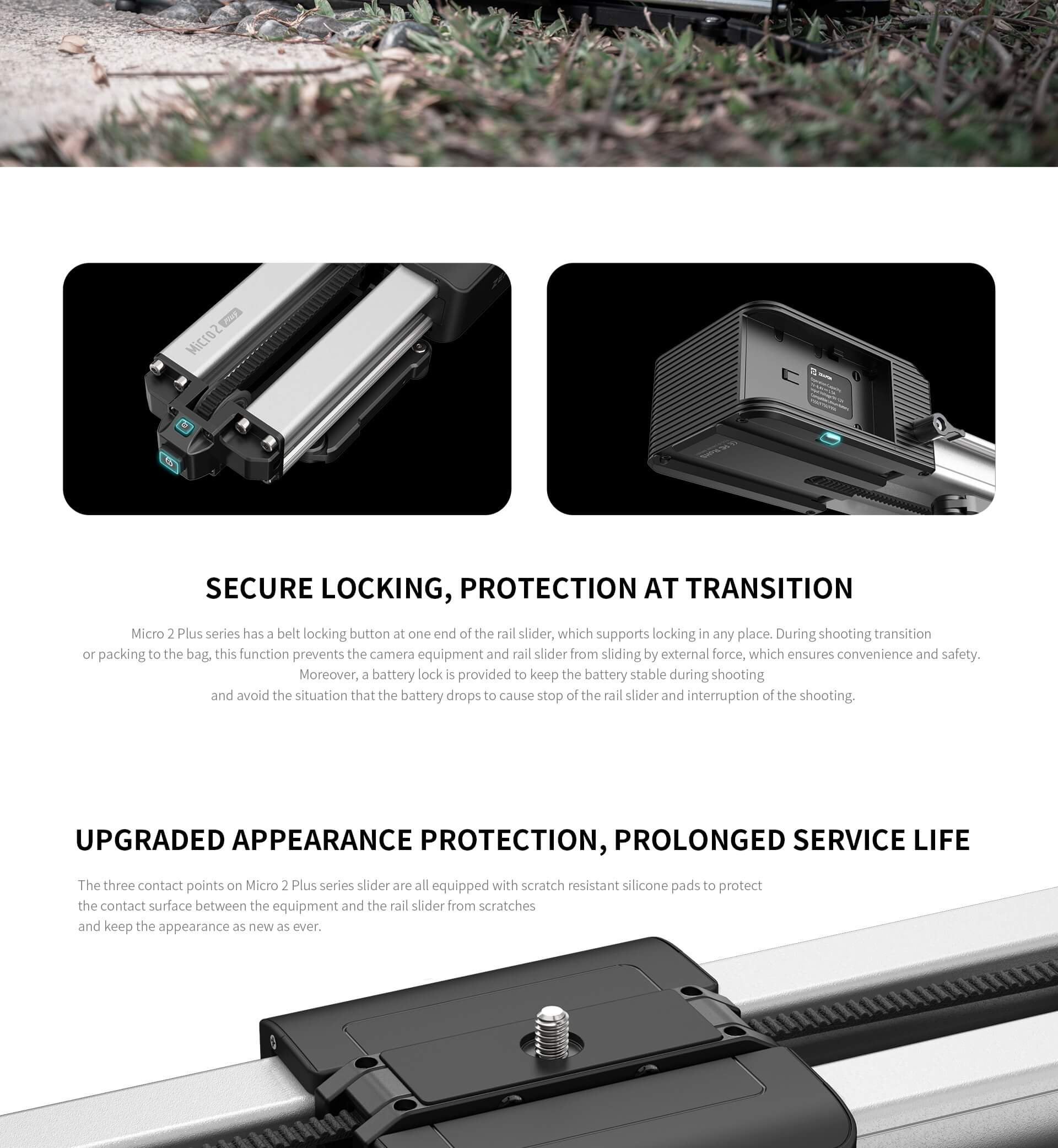 Micro 2 Plus series is the most affordable slider professional solution. This series is a complete upgrade of the original Micro2. Zeapon has been committed to making more intuitive support equipment to cinematographers with the cutting-edge technology and exquisite product details. The ultra-short and portable double travel distance design, smooth damping, and large motor load are still the best features of Micro2 Plus.